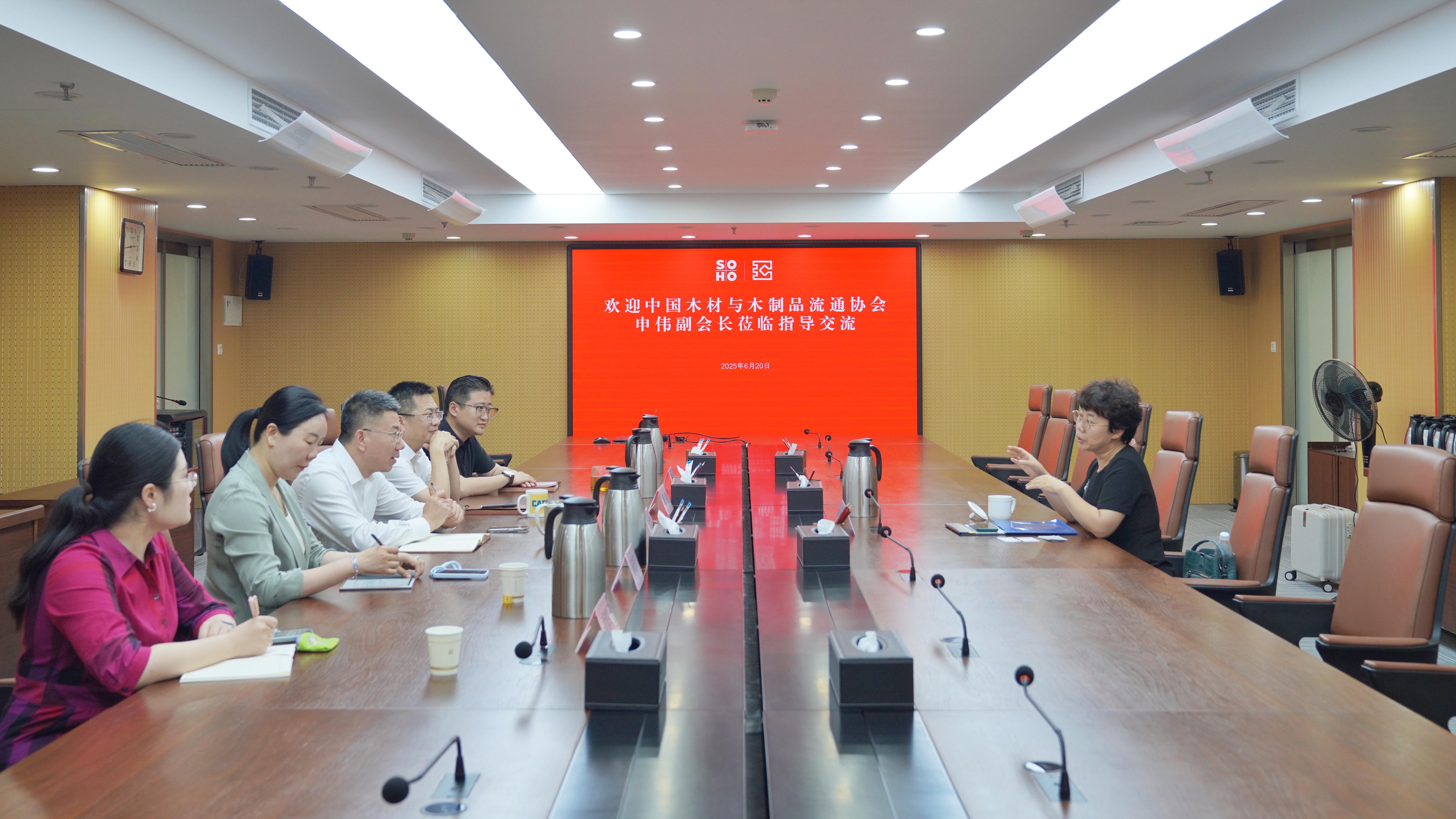 6月20日,中國木材與木制品流通協(xié)會(huì)副會(huì)長兼專職秘書長申偉到訪公司。公司董事長溫成剛、總經(jīng)理董旭攜相關(guān)業(yè)務(wù)及職能部門熱情接待,并開展座談交流。