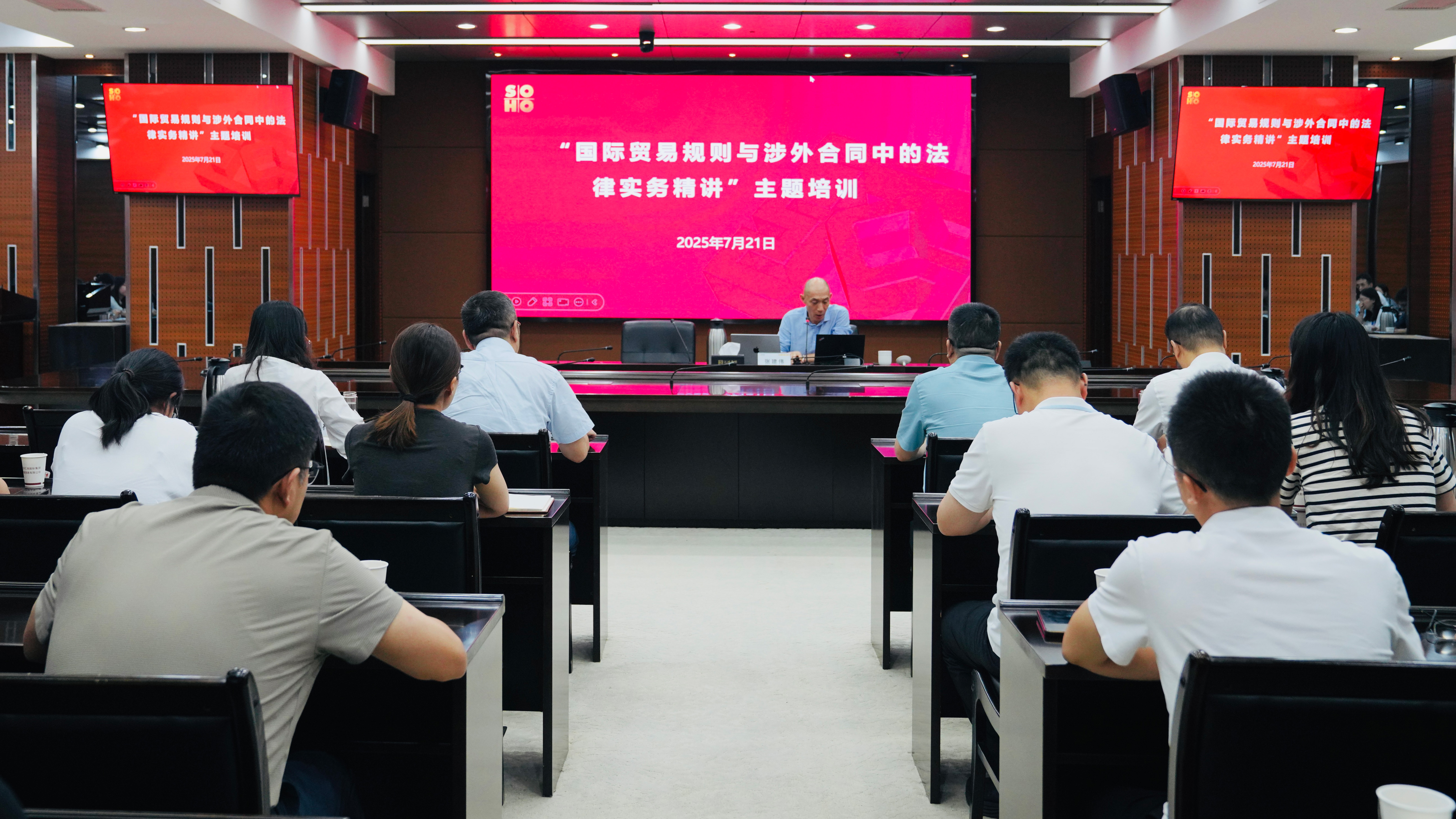 為全面提升涉外業(yè)務法律風險防控能力,護航公司高質量經(jīng)營發(fā)展,7月21日下午,蘇豪中錦公司組織開展 “國際貿(mào)易規(guī)則與涉外合同中的法律實務精講” 主題培訓。公司領導班子成員、各業(yè)務部門負責人及業(yè)務骨干、相關職能部門人員等50余人參會學習。