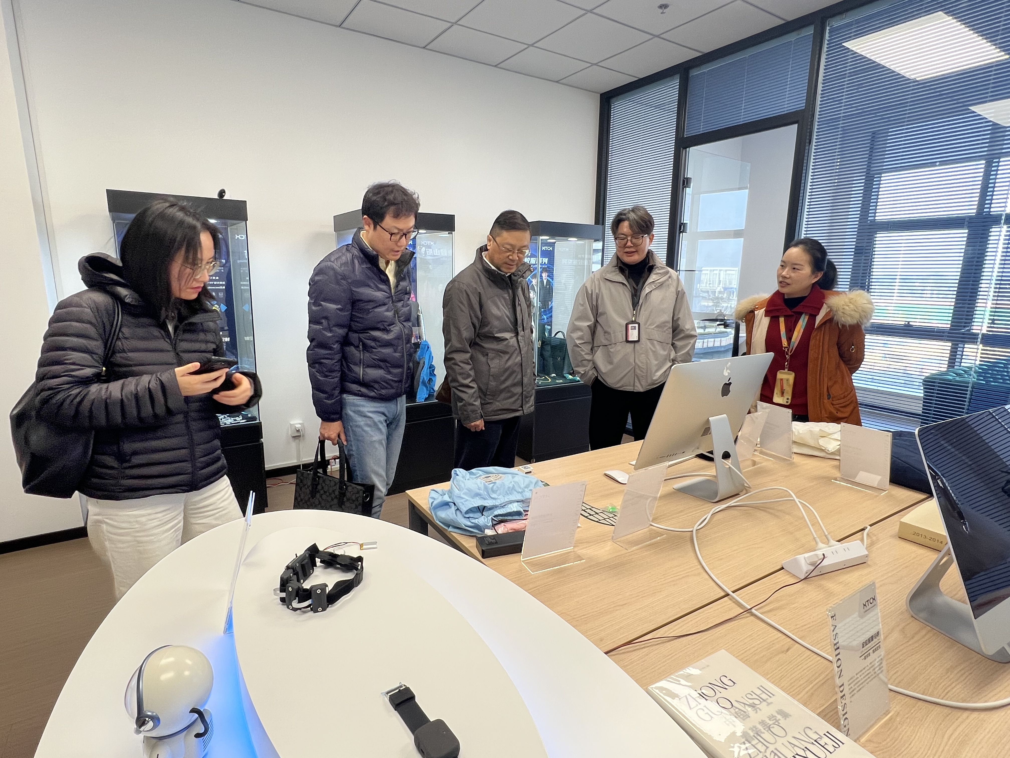 在江南大學(xué)相關(guān)負(fù)責(zé)人的陪同下,趙亞平一行參觀了服裝智能穿戴產(chǎn)業(yè)創(chuàng)新實(shí)驗(yàn)室,親身體驗(yàn)科技與產(chǎn)業(yè)融合的最新成果?,F(xiàn)場(chǎng)展示的太陽能充電登山服、足底壓力傳感鞋墊及定位報(bào)警馬甲等產(chǎn)品,體現(xiàn)了智能穿戴在戶外、健康、安全等場(chǎng)景的實(shí)際應(yīng)用。這些創(chuàng)新方向與中錦公司發(fā)展戰(zhàn)略高度契合,為雙方進(jìn)一步合作奠定了良好基礎(chǔ)。