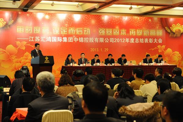 1月29日下午,中錦公司在金陵飯店隆重召開2012年度總結(jié)表彰大會(huì)。匯鴻集團(tuán)董事長馮全兵,副總裁許冰鑒、許榮云、蔣金華,總會(huì)計(jì)師王健英,總裁助理董寧等領(lǐng)導(dǎo)出席會(huì)議,集團(tuán)監(jiān)事會(huì)主席施建國到會(huì)指導(dǎo),中錦公司全體員工參加會(huì)議。