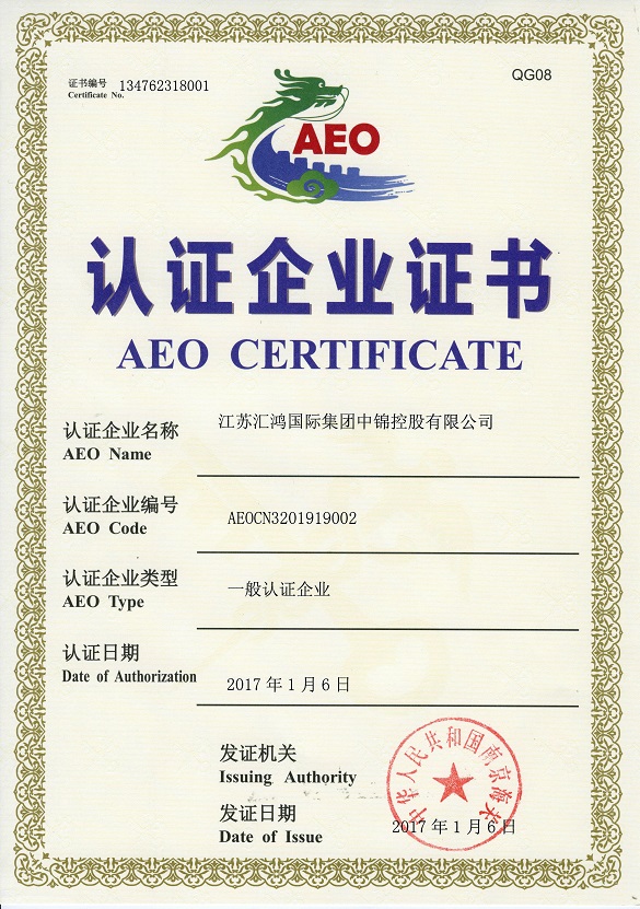 新年伊始迎喜訊。經(jīng)過近一年的艱苦努力,1月9日下午,匯鴻中錦公司收到南京海關(guān)1月6日簽發(fā)的一般《認(rèn)證企業(yè)證書》。