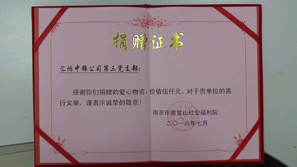 7月25日上午,匯鴻中錦公司第三黨支部黨員和積極分子代表共九人赴南京市祖堂山社會(huì)福利院開(kāi)展愛(ài)心捐贈(zèng)活動(dòng)。