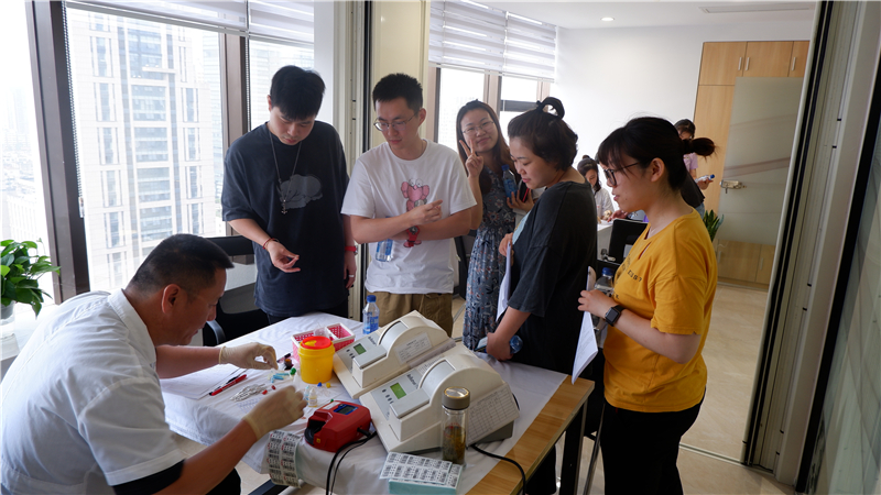 本次活動(dòng)由匯鴻中錦公司團(tuán)委全程組織,公司上下積極響應(yīng),共有41人參與報(bào)名,29人實(shí)際完成獻(xiàn)血,他們是田樹林、高潔、邱俊嫻、王曉敏、湯信元、胡穎燕、紀(jì)華鵬、錢白虹、唐曉文、徐珺琰、王琥、朱菲凡、莊治偉、王婧、丁木海、榮瑞婷、殷麗華、張巍、施聰、徐帥飛、畢康、羅穎、凌薇、郜婧、孫歡、吳小紅、呂希毅、林祚敏、高俊?;顒?dòng)中,大家積極配合醫(yī)護(hù)人員進(jìn)行獻(xiàn)血前的體檢化驗(yàn),順利完成采血工作,共計(jì)獻(xiàn)血6900 ml。