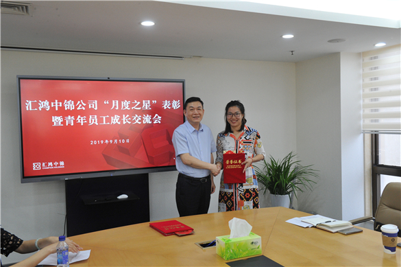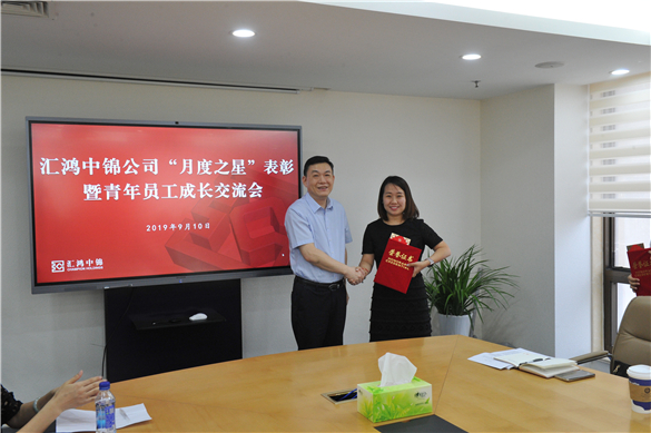 9月10日下午,匯鴻中錦公司在25樓會(huì)議室召開(kāi)“月度之星”表彰暨青年員工成長(zhǎng)交流會(huì)。公司黨委委員、各業(yè)務(wù)部門青年員工代表共計(jì)24人參加會(huì)議,黨委委員謝雪梅主持會(huì)議。