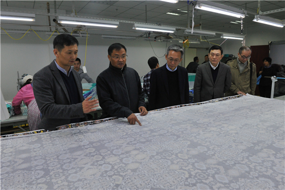 11月8日下午,中國(guó)紡織品進(jìn)出口商會(huì)曹甲昌會(huì)長(zhǎng)一行赴匯鴻中錦公司調(diào)研。匯鴻集團(tuán)總裁陳述及集團(tuán)運(yùn)營(yíng)部負(fù)責(zé)人陪同參觀。