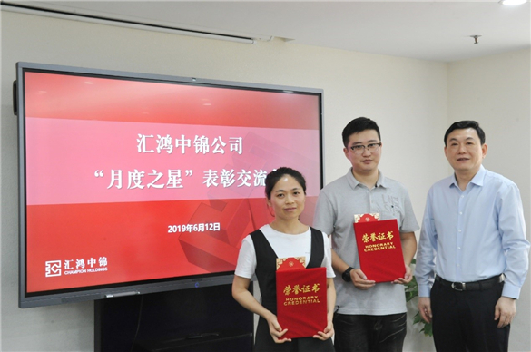 根據(jù)“大學(xué)習(xí)大調(diào)研大落實”行動方案要求,為更好發(fā)揮先進(jìn)標(biāo)桿的引領(lǐng)作用,營造善于學(xué)習(xí)先進(jìn)、勇于趕超先進(jìn)的積極氛圍,6月12日上午,匯鴻中錦公司召開“月度之星”表彰交流會,隆重表彰了當(dāng)選5月“月度之星”的錦元分公司業(yè)務(wù)二部經(jīng)理葛芝瑩和辦公室品牌運(yùn)營專員蔣冉迪。公司黨委委員、各部門負(fù)責(zé)人及員工代表40多人參加會議,黨委委員謝雪梅主持會議。