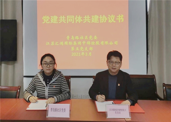 為貫徹落實省國資委相關(guān)通知要求,更好實施基層黨組織“五聚焦五落實”三年行動計劃,3月15日,匯鴻中錦公司第五黨支部與湖南路街道青島路社區(qū)簽訂共建協(xié)議,并開展共建交流活動。第五黨支部支委、青島路社區(qū)領(lǐng)導(dǎo)及雙方黨員代表參加。