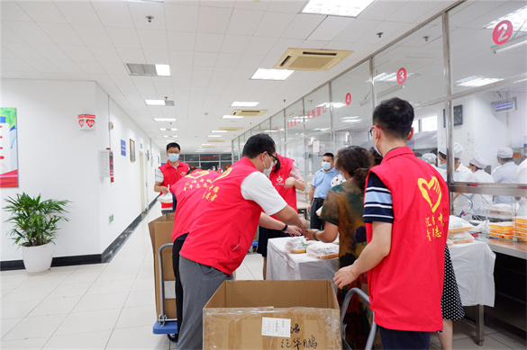 每日上午10點(diǎn),當(dāng)公司當(dāng)日用餐人員統(tǒng)計(jì)表更新完畢,志愿者們便開(kāi)始了他們?nèi)斓姆?wù)工作。有人負(fù)責(zé)每日配餐人數(shù)的統(tǒng)計(jì)和樓層分配,有人負(fù)責(zé)志愿者群里工作信息的及時(shí)更新和報(bào)備,有人負(fù)責(zé)午餐的領(lǐng)取和發(fā)放。中午時(shí)分,從取餐到分餐再到員工吃上熱乎乎的午飯,全程不到15分鐘時(shí)間。高效的服務(wù)、負(fù)責(zé)的態(tài)度、認(rèn)真的工作,使這支特殊的志愿服務(wù)隊(duì)廣受好評(píng)。