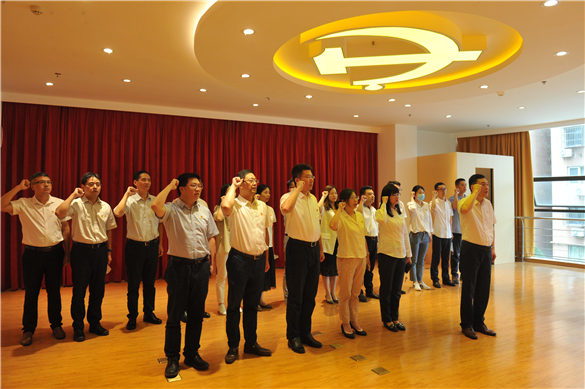 會(huì)前,匯鴻中錦公司黨委班子帶領(lǐng)支部書(shū)記、支委共同參觀集團(tuán)黨建文化中心,通過(guò)觀賞一幅幅照片、一件件展品再次重溫中國(guó)共產(chǎn)黨走過(guò)的百年征程,深刻感受到匯鴻人“永遠(yuǎn)跟黨走”的赤誠(chéng)初心和匯鴻集團(tuán)黨建工作的喜人成果。在黨建活動(dòng)廳內(nèi),由黨委書(shū)記吳毅民領(lǐng)誓,全體與會(huì)人員面對(duì)黨旗重溫入黨誓詞。