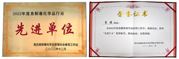 會(huì)上,公司被授予2022年度易制毒化學(xué)品行業(yè)“先進(jìn)單位”榮譽(yù)稱號(hào)。 同時(shí),公司辦公室李謙同志被評(píng)選為“先進(jìn)個(gè)人”。