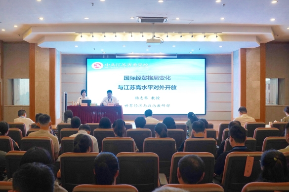 為扎實(shí)推進(jìn)學(xué)習(xí)貫徹習(xí)近平新時代中國特色社會主義思想主題教育,7月10日上午,公司邀請江蘇省委黨校世界經(jīng)濟(jì)與政治教研部楊志琴教授作《國際經(jīng)貿(mào)格局變化與江蘇高水平開放型經(jīng)濟(jì)建設(shè)》專題輔導(dǎo)報(bào)告。公司領(lǐng)導(dǎo)班子成員、全體黨員、中層干部及業(yè)務(wù)骨干聆聽報(bào)告會。