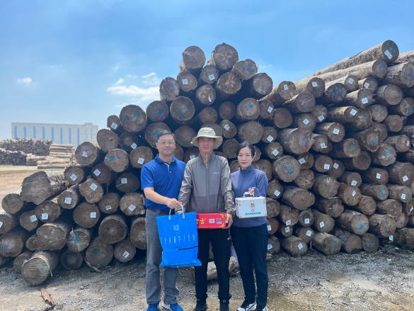 炎炎夏日,匯鴻中錦公司運管服務(wù)部巡庫人員依然堅守崗位、揮灑汗水,為保障公司貨物安全辛勤工作。8月7日,公司副總經(jīng)理趙亞平攜工會人員赴山東嵐山木材倉庫慰問高溫下堅持作業(yè)的一線巡庫工作者,向他們表達了組織的關(guān)懷和敬意,并送去了防暑降溫物資。