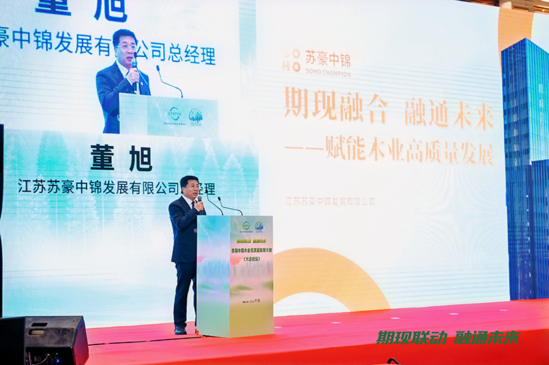 在全體大會環(huán)節(jié),董旭發(fā)表了題為《期現(xiàn)融合,融通未來——賦能木業(yè)高質(zhì)量發(fā)展》的主旨演講,分享了公司在推動木材產(chǎn)業(yè)現(xiàn)代化與高質(zhì)量發(fā)展方面的實踐與思考。